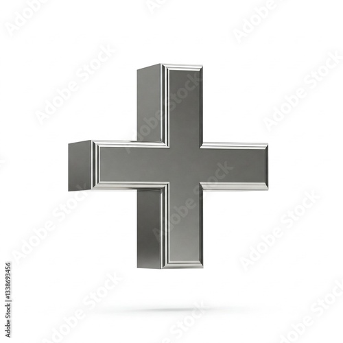Obraz premium Three dimensional metallic plus symbol "+" , reflecting ambient light with a...