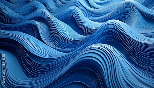© Verdiana, Obraz premium Three dimensional render of blue wavy pattern