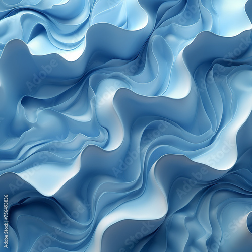 © Rashid, Obraz premium Three dimensional render of blue wavy pattern, ai technology