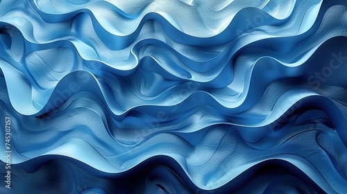 © Morng, Obraz premium Three-dimensional rendering of a blue wavy pattern
