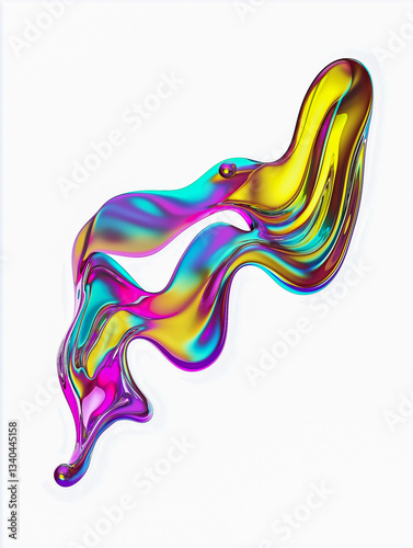 © Irina, Naklejka premium Three-dimensional rendering of a multicolored, iridescent abstract sculpture on a white background.