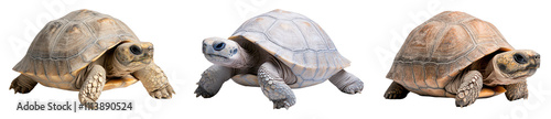 Fototapeta premium Three distinct turtles in varying colors and postures showcasing their unique...