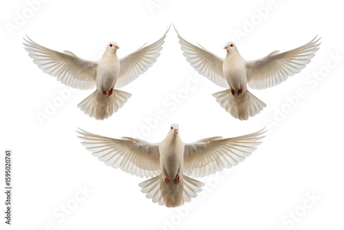 © Vlad, Obraz premium Three doves in perfect flight formation against a dark background