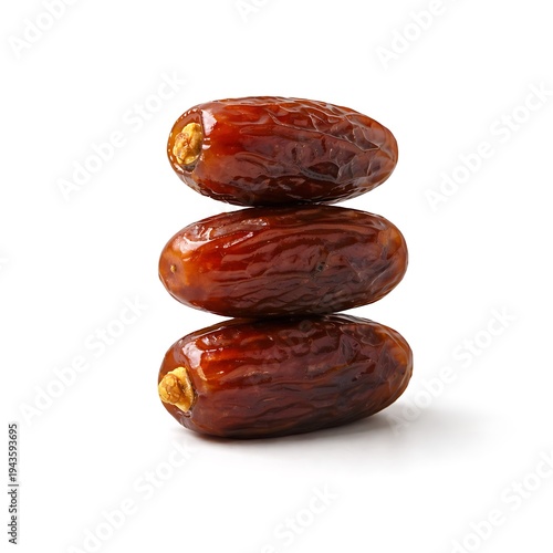 © zia, Obraz premium Three Dried Dates Stacked Vertically Minimal Geometric Composition on White Background