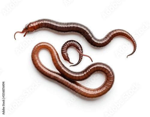 Fototapeta premium Three Earthworms Isolated on White Background