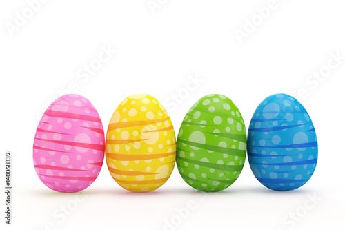 Obraz premium Three Easter eggs on a white background. 3d render illustration.
