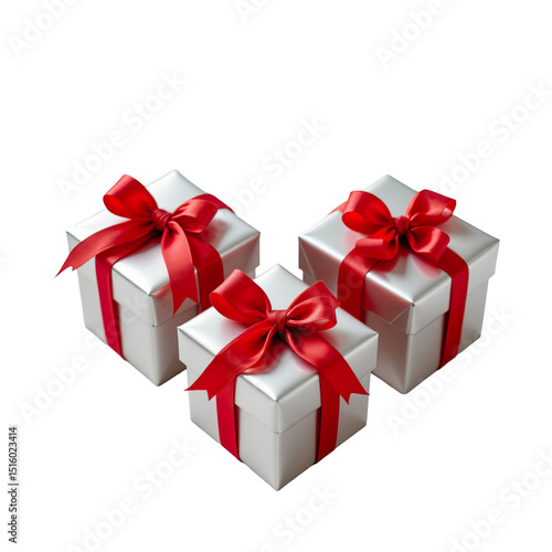 Fototapeta premium Three Elegant Silver Gift Boxes with Red Ribbons for Celebrations and Special...