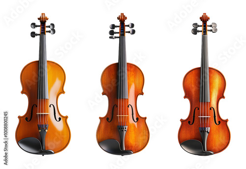 © devi, Fototapeta premium Three Elegant Wooden Violins on Transparent Background