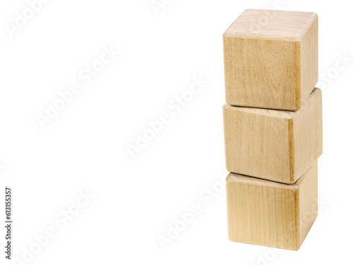 Obraz premium Three empty wood blocks arranged vertically, for your text, isolated on a...