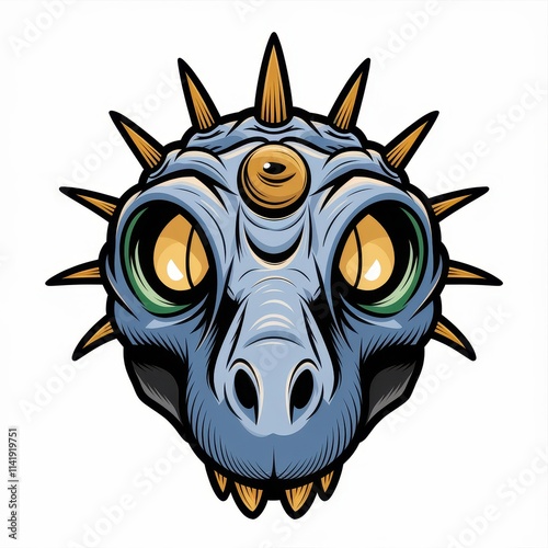 © Media Srock, Fototapeta premium Three Eyed Spiked Reptilian Creature Head
