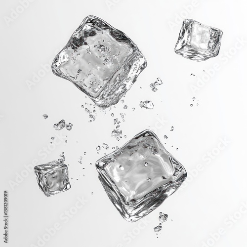 © mohsin, Obraz premium three falling ice cubes isolated on transparent or white background