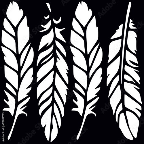 © Roman, Naklejka premium Three Feathers – Stencil drawing for a laser machine