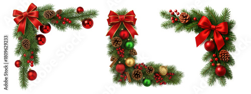 Obraz premium Three festive christmas corner garland borders for holiday design isolated on...