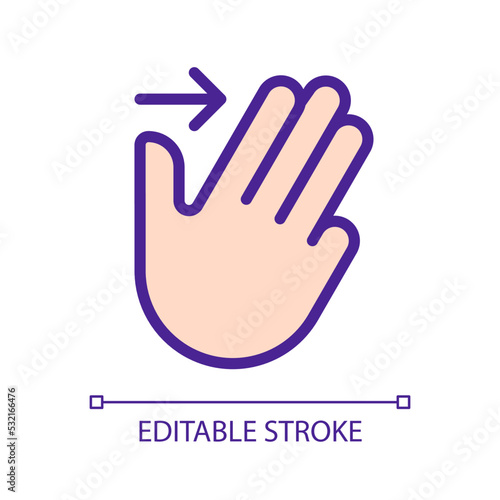 Obraz premium Three finger swipe pixel perfect RGB color icon. Multi touch control....