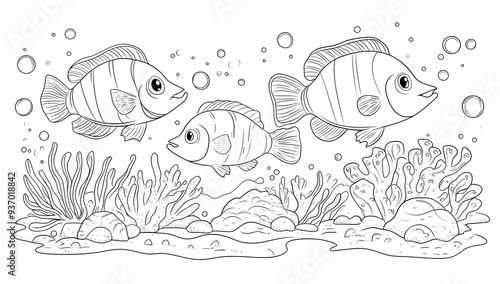Fototapeta premium Three Fish Swimming in Coral Reef.