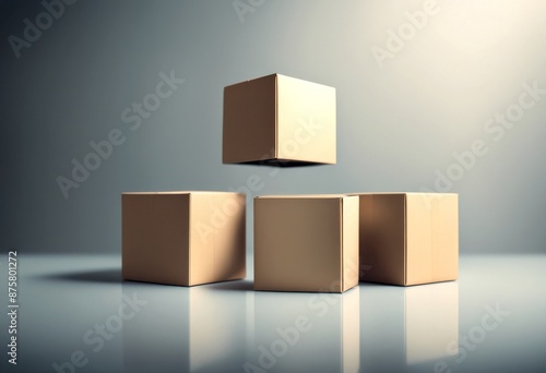 © wafi, Fototapeta premium three floating empty composition abstract boxes