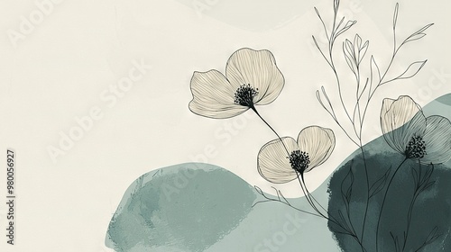 © Igor, Naklejka premium Three flowers on white-blue background with black-white design at bottom