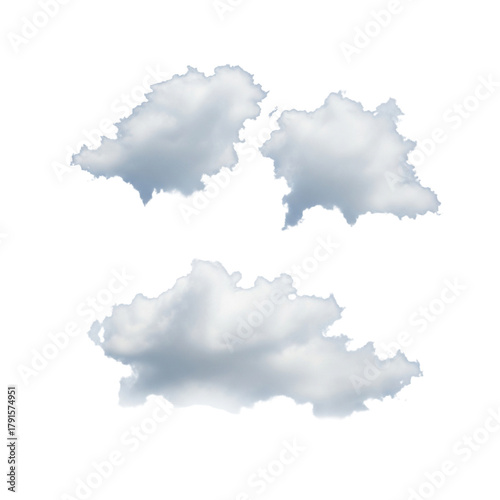 © Rajibchandra, Obraz premium Three fluffy cumulus clouds isolated on transparent background
