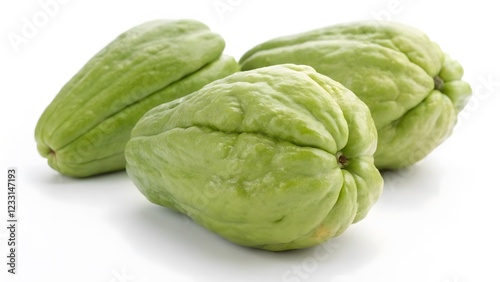 © Tima, Fototapeta premium Three Fresh Chayotes on White Background