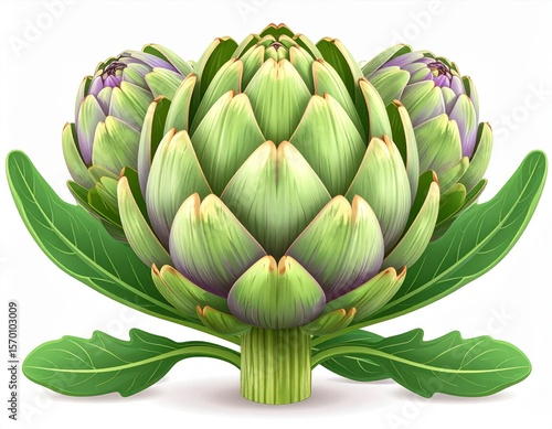© Visioner, Fototapeta premium Three Fresh Green Artichokes on White Background
