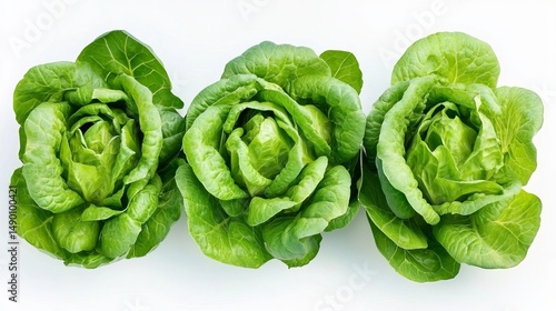 © Honey, Fototapeta premium Three fresh green butterhead lettuce heads isolated on white background food diet farm crop salad
