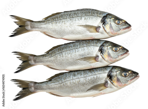 © David, Fototapeta premium Three fresh whole sea bass. Cut out PNG