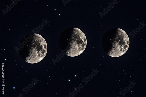 Fototapeta premium Three full moons shining brightly in a starry night sky
