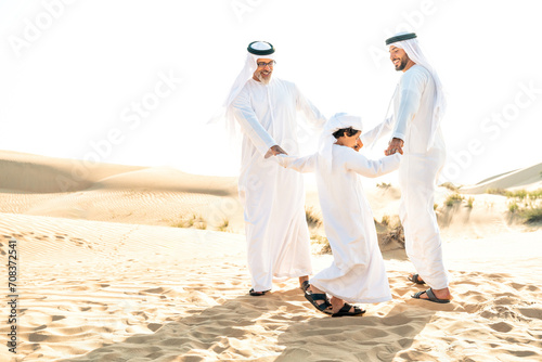 Naklejka premium Three generation family making a safari in the desert of Dubai