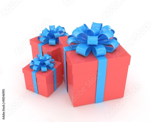 © Natalia Merzlyakova, Obraz premium three gift boxes with bows isolated on white