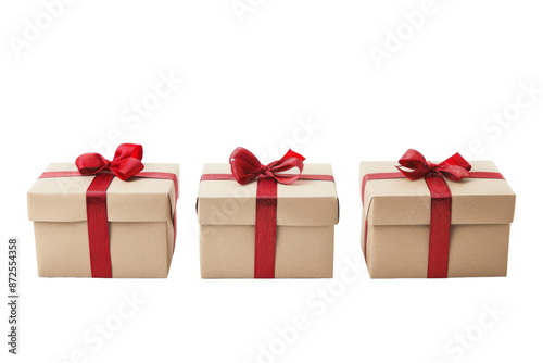 Obraz premium Three gift boxes with red ribbon and bow