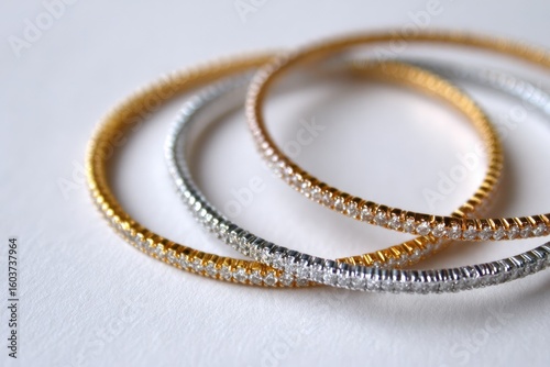 Fototapeta premium Three gold and silver diamond-studded bangles