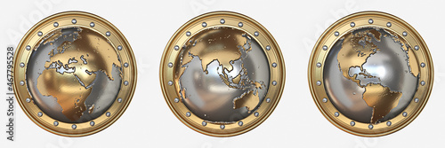 © djmilic, Naklejka premium Three golden globe shields 3D