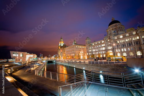 © shaunjeffers, Obraz premium Three Graces by Night, Liverpool