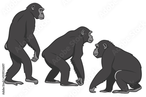 Obraz premium Three gray monkeys in different postures graphic illustration isolated