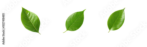 © YiuCheung, Fototapeta premium Three green leaves are isolated on a white background.