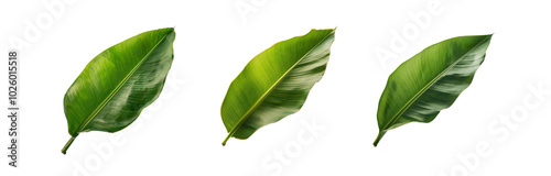 © joeycheung, Fototapeta premium Three green leaves isolated on a white background.