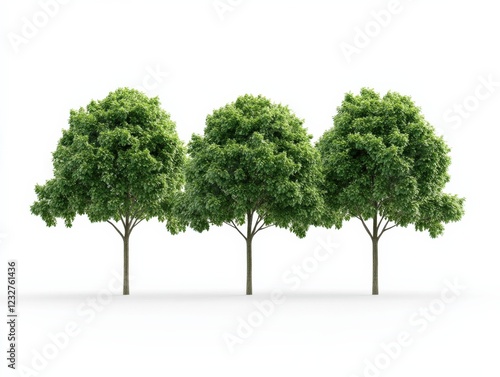 © Priya, Obraz premium three green trees isolated on a white background