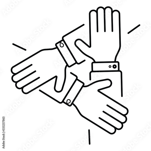 © Rufat, Obraz premium three hands support each other, concept of teamwork, icon vector