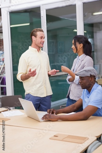 © WavebreakmediaMicro, Fototapeta premium Three happy businessmen working together on a laptop