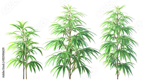 Fototapeta premium Three hemp plants side by side isolated on transparent background