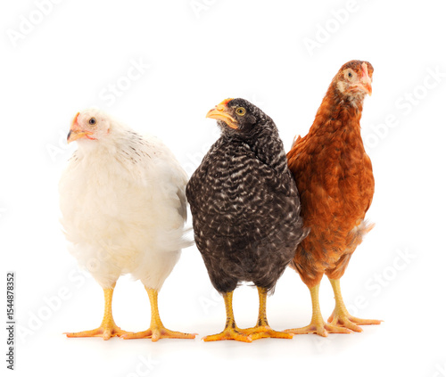 © Galyna, Fototapeta premium Three hens isolated.