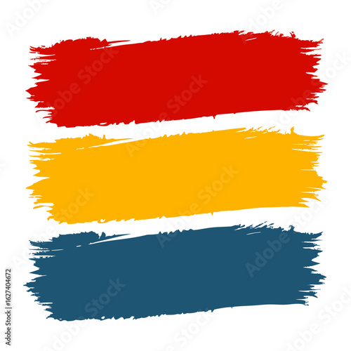 Obraz premium Three horizontal brush strokes in red yellow and blue with textured edges on...
