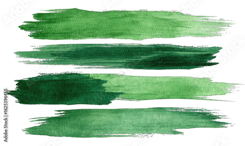 © Fitri, Obraz premium Three horizontal, textured, dark green watercolor paint strokes