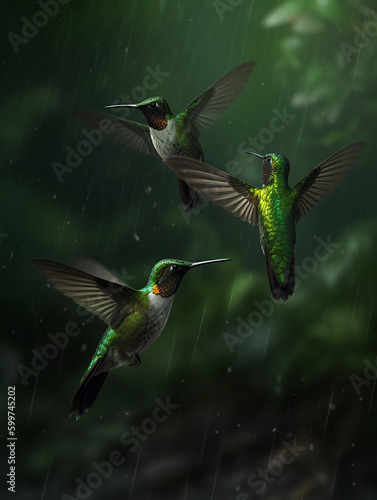 Fototapeta premium three hummingbirds flying, Generate Ai