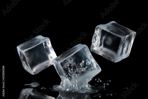 © Lumos Maxima, Obraz premium Three ice cubes, isolated on dark black background