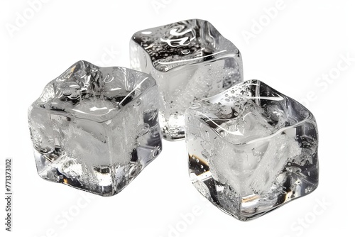 © Kateryna Muzhevska, Obraz premium Three ice cubes on a white background