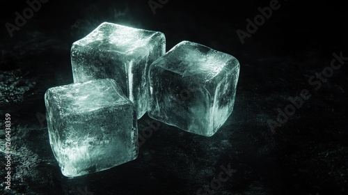 Obraz premium Three ice cubes on dark surface, cool background, drink refreshment