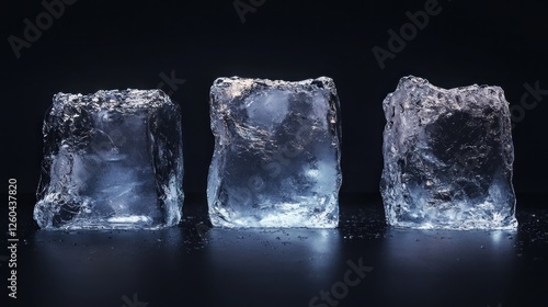 Obraz premium Three ice cubes on dark surface, studio shot, cold drink concept