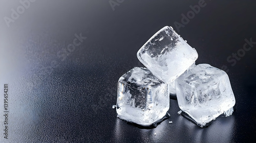 Obraz premium Three Ice Cubes On Dark Wet Surface