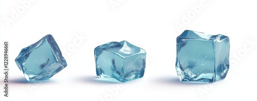 © Agyar, Obraz premium Three ice cubes on white, studio shot, refreshing background, beverage use